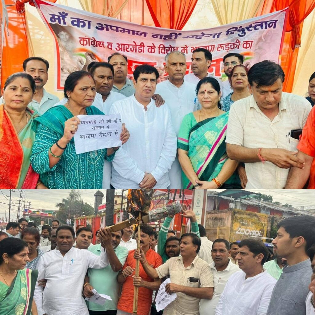 पीएम मोदी की मां को गाली देने का विरोध:रुड़की में भाजपा ने कॉंग्रेस,राजद के खिलाफ सांकेतिक धरना प्रदर्शन किया