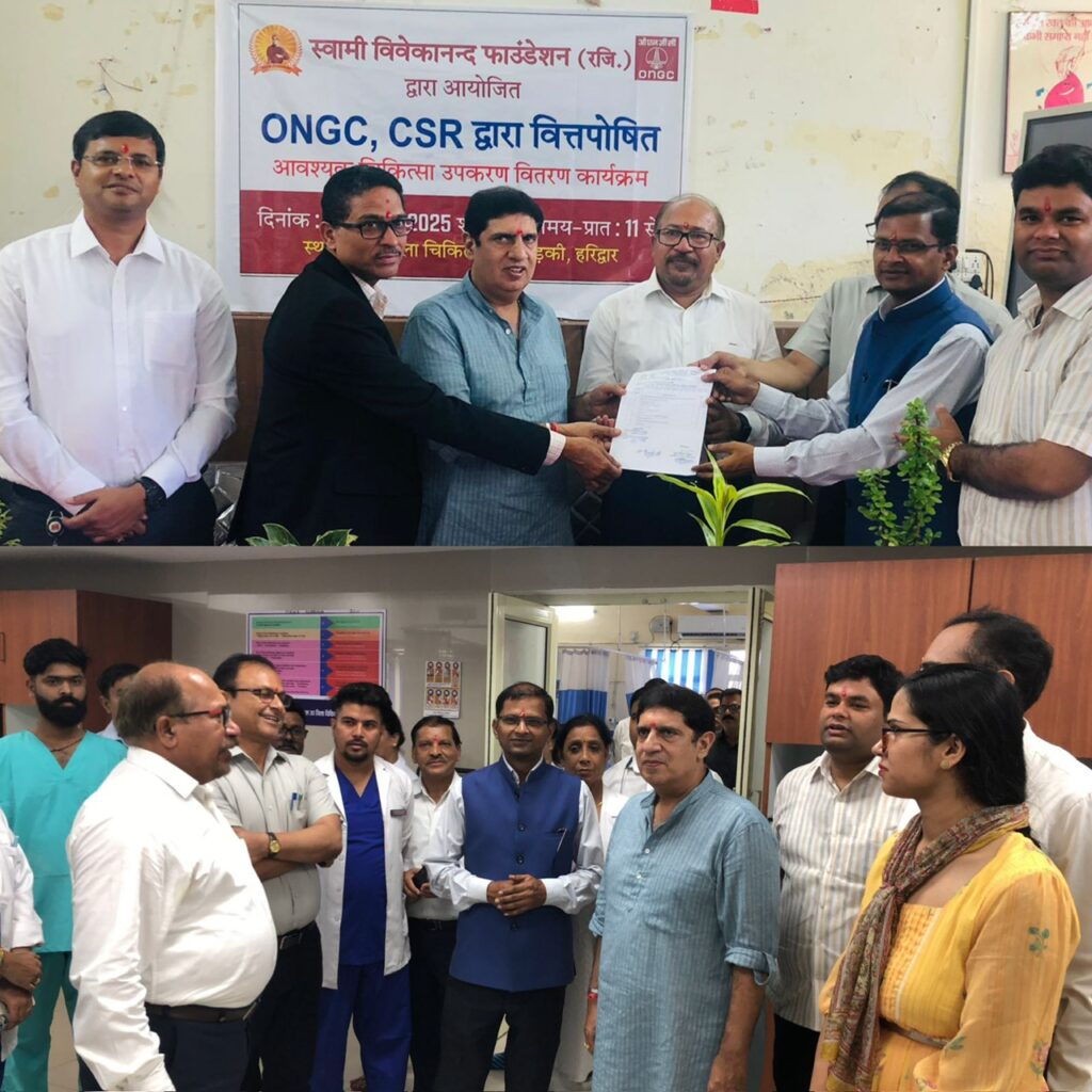 रुड़की।स्वामी विवेकानंद फाउंडेशन (रजि.) द्वारा आयोजित तथा ओएनजीसी, सीएसआर द्वारा वित्तपोषित आवश्यक चिकित्सा उपकरण वितरण कार्यक्रम उपजिला चिकित्सालय, रुड़की में आयोजित किया गया। इस अवसर पर क्षेत्रीय विधायक प्रदीप बत्रा मुख्य रूप से मौजूद रहे।
