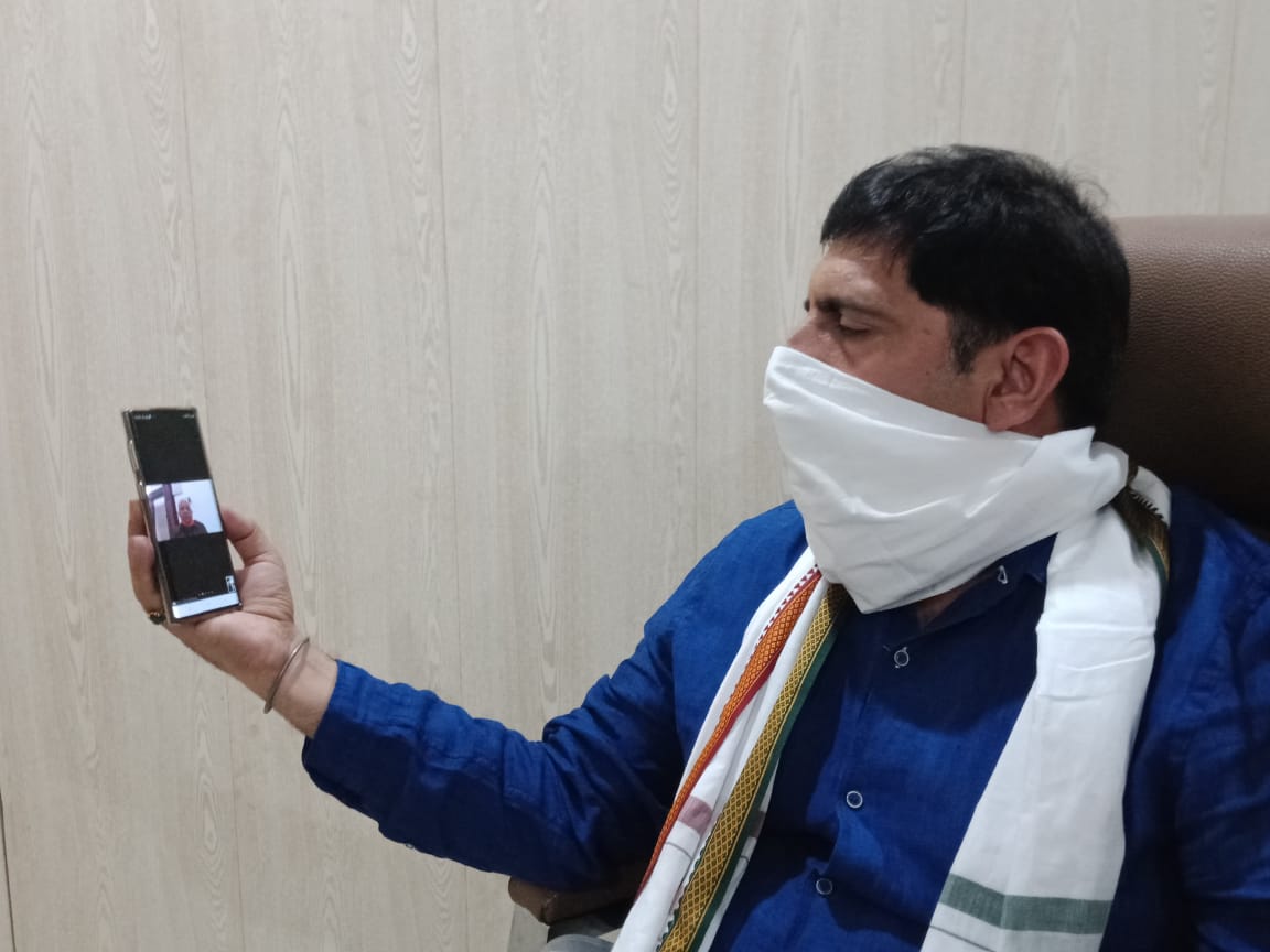 भाजपा प्रदेश अध्यक्ष ने की सभी विधायकों के साथ विडीओ कानफ़्रेंसिंग।नगर विधायक प्रदीप बत्रा से वीडियो कॉन्फ्रेंसिंग के ज़रिए ली राहत कार्यों की जानकारी।